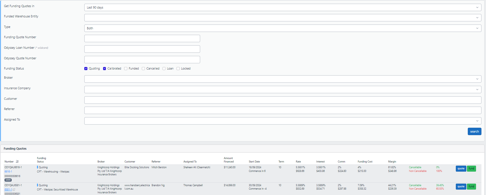 3. You will be presented with a page that will automatically list the quotes that have been created in the last 90 days:
