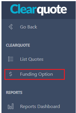 2. Once in Clearquote select the "Funding Option" menu item