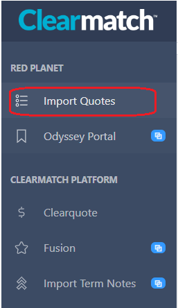 1. Navigate to the Clearmatch Admin Portal and select the "Import Quotes" menu item.