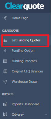 2. Once in Clearquote select the "List Funding Quotes" menu item