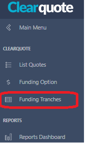 2. Once in Clearquote select the "Funding Tranches" menu item