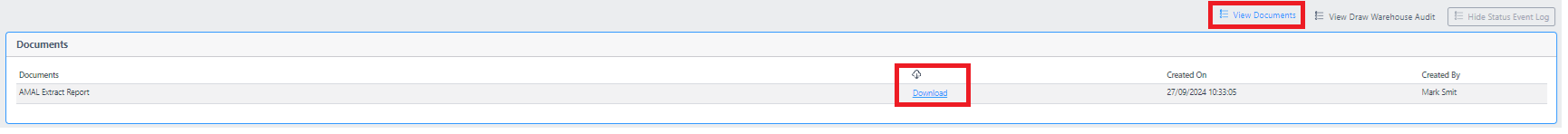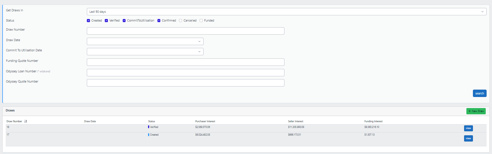 3. You will be presented with a page that will automatically list the warehouse draws that have been created in the last 90 days: