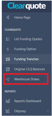 2. Once in Clearquote select the Warehouse Draws" menu item