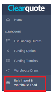 2. Once in Clearquote select the "Bulk Import and Warehouse Load"" menu item